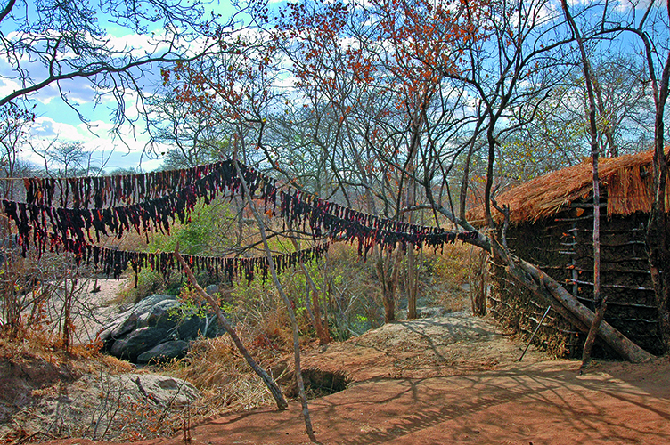 Photo above: Strips of Cape buffalo meat drying for biltong at a hunting camp in rural Tanzania.